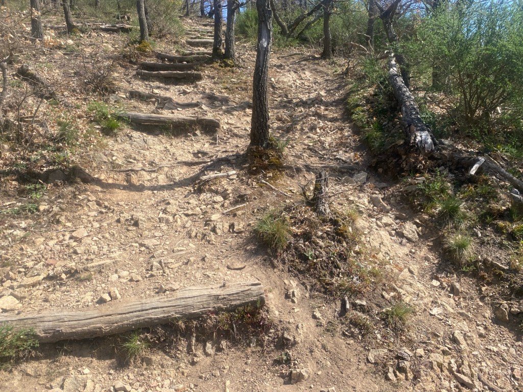 Es ging zuerst durch die Stadt Bad Kreuznach, immer Berg hoch über den Panorama Weg zur Klassik Tour. Diese führte um den Rotenfels herum. Er leuchtete mal im Steinbruch und mal von der Anhöhe herab. Wir stiegen auf teilweise unbequemen Wegen nach oben .