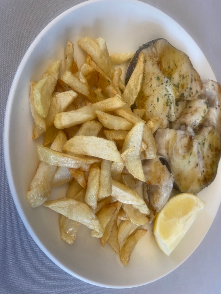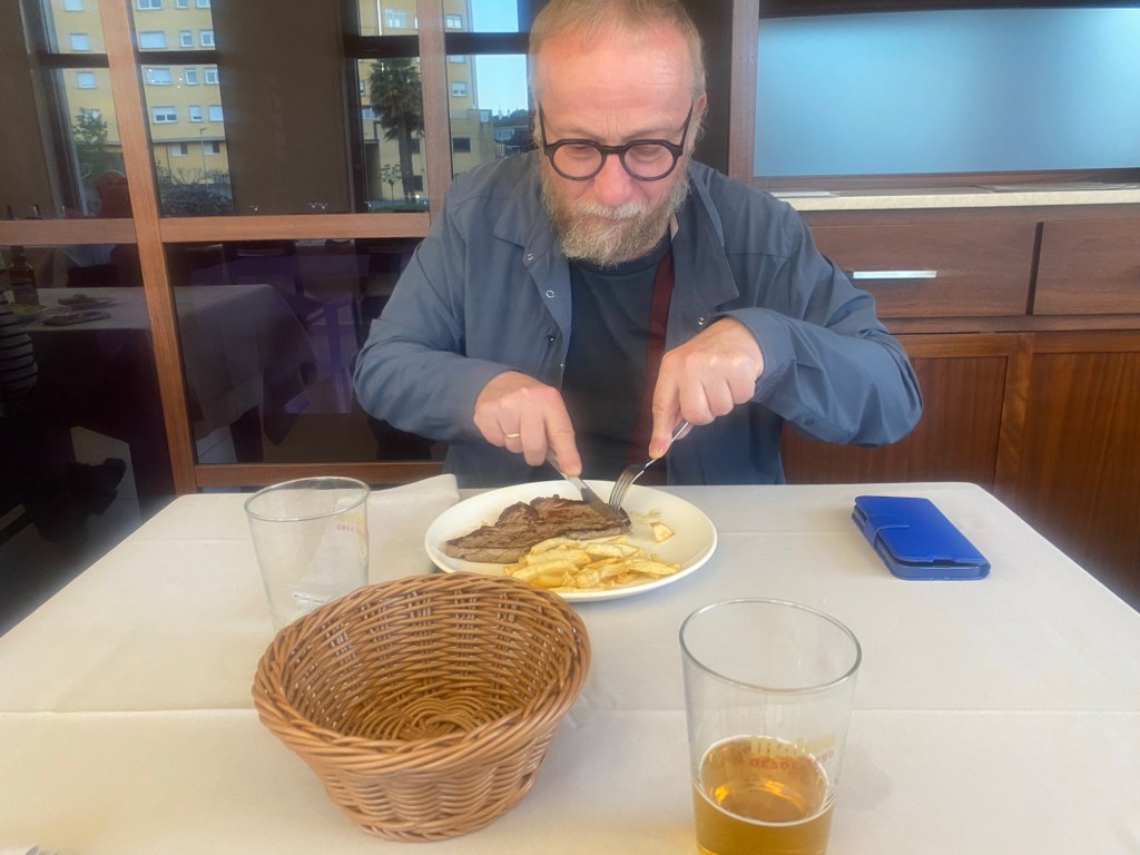 Das Einchecken ging problemlos. Dann Essen fassen. Das erste Mal bekamen wir galizisches Essen vorgesetzt. Ich entschied mich für eine galizische Fischsuppe und einem gegrilltem Seehecht. Beides war ausgezeichnet, so kann das Pilgern losgehen.