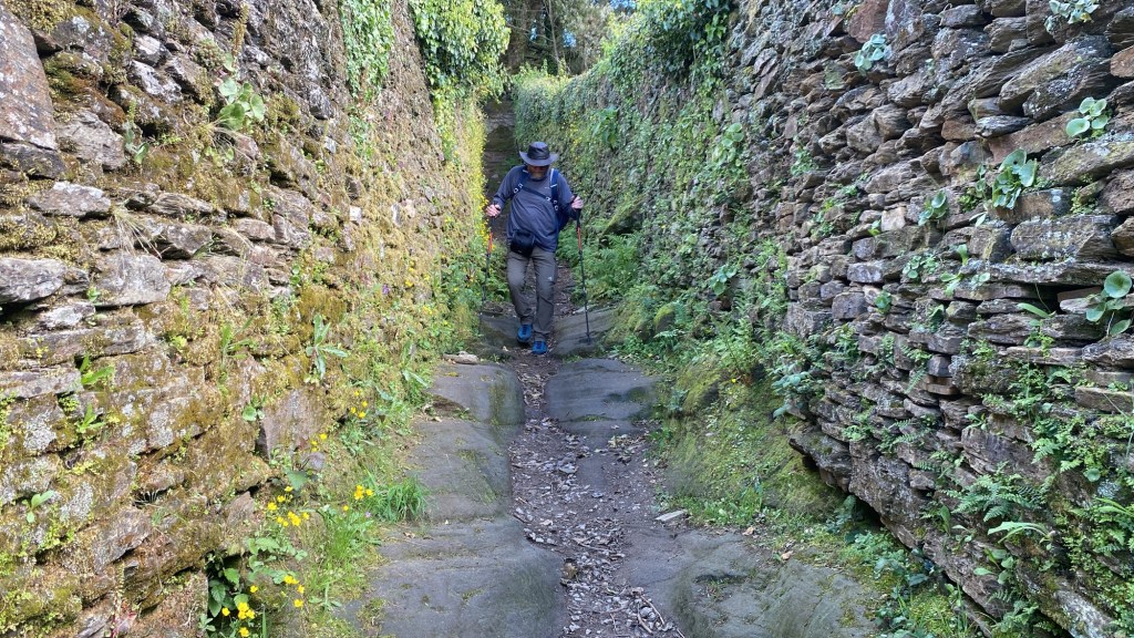 Ab hier sind es noch 100 km bis Santiago. Kurz nach Vilacha verzweigte sich der Weg. Der Hauptweg gingnach links und stieg nach wenigen Minuten durch einen engen steilen Felskanal zur LU-633 ab.