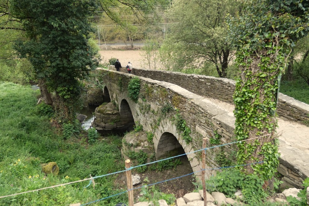 Wir folgten den gelben Pfeilen und dem Symbol der Jakobsmuschel und verließen Sarria über die Römer Brücke Ponte da Aspera.