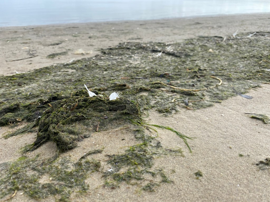 Die Algen zersetzen sich so und so nicht. Es sind kleine Berglandschaften anstelle von Sand. Schade , es wird hier noch ein schöner Radweg gebaut ,aber wer wird hier noch herkommen und so geht es an vielen Orten.