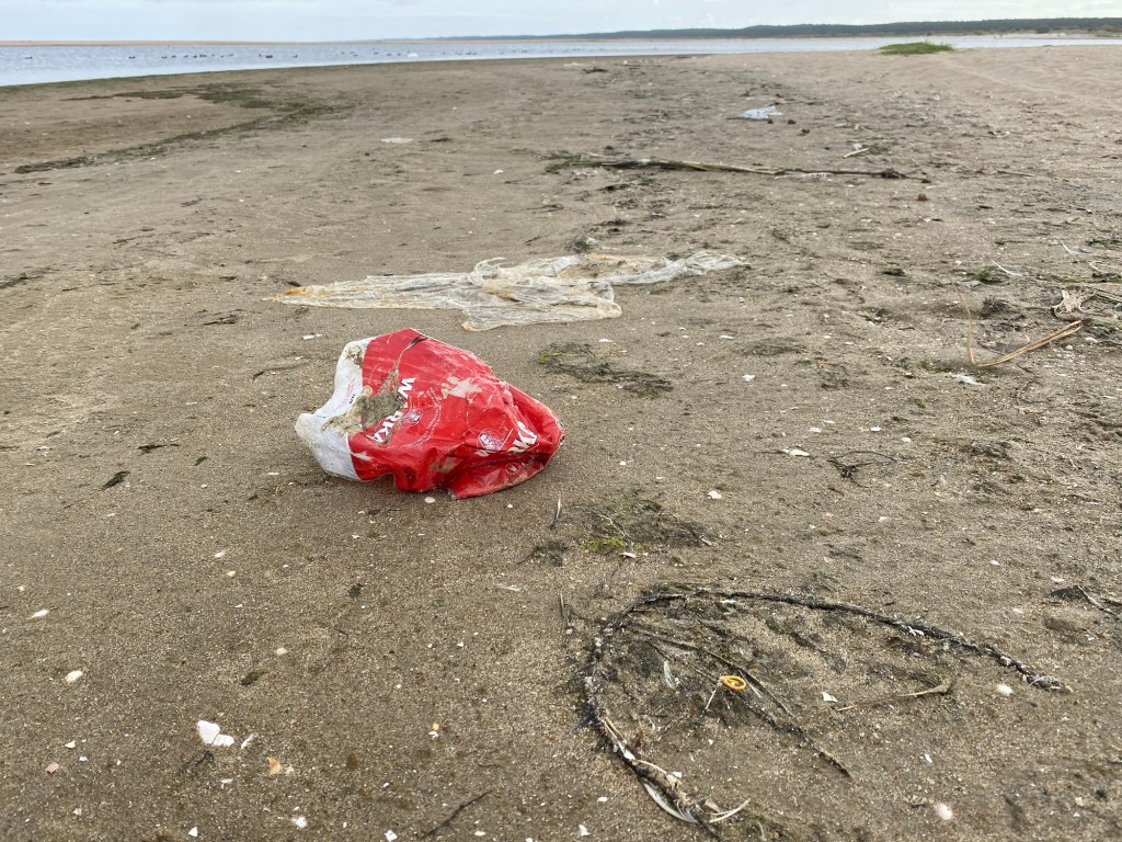 Der Strand sieht auf den ersten Blick noch ziemlich idyllisch aus. Aber auf dem zweiten Blick sieht man auch den Müll innerhalb der schönen Sandidylle. Niemand nimmt etwas mit ,alles bleibt liegen.