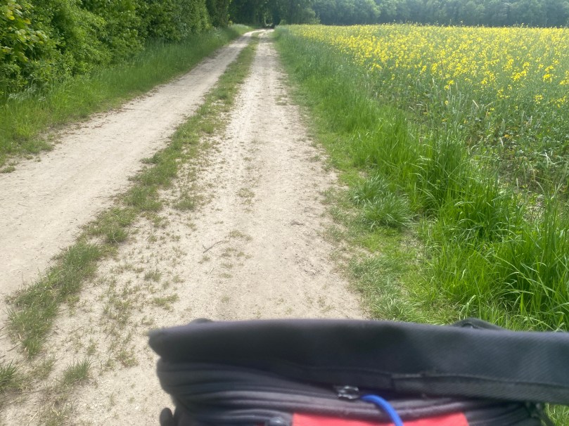Lässt man sich von schon ausgezeichneten Radwegen leiten, kommt man an sehr schönen Feldern, Wiesen und Baumalleen vorbei. Es ist eine Freude hier zu fahren.