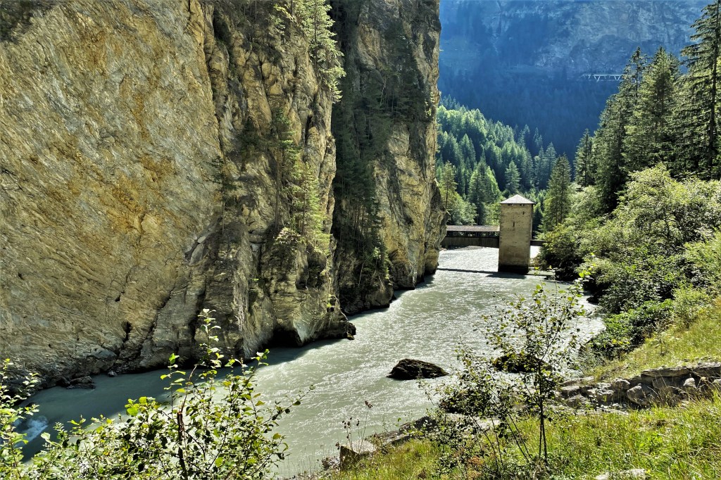 Bevor wir aber den Reschenpass passieren konnten, ging es auf steinigen Kieswegen steil bergauf Richtung Schweiz. Ein beliebtes Fotomotiv vor der Grenze zur Schweiz ist die ehemalige Grenzfeste und Zollstation Altfinstermünz an der Innschlucht zwischen Pfunds und Nauders.