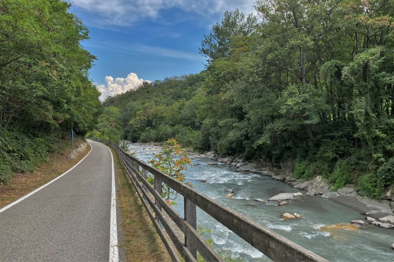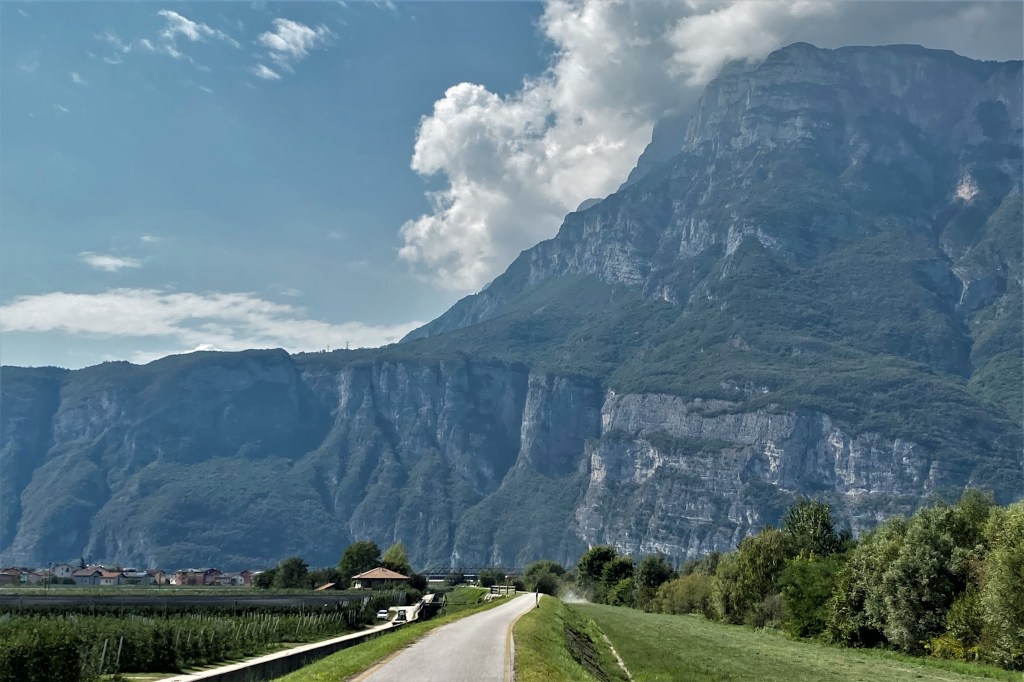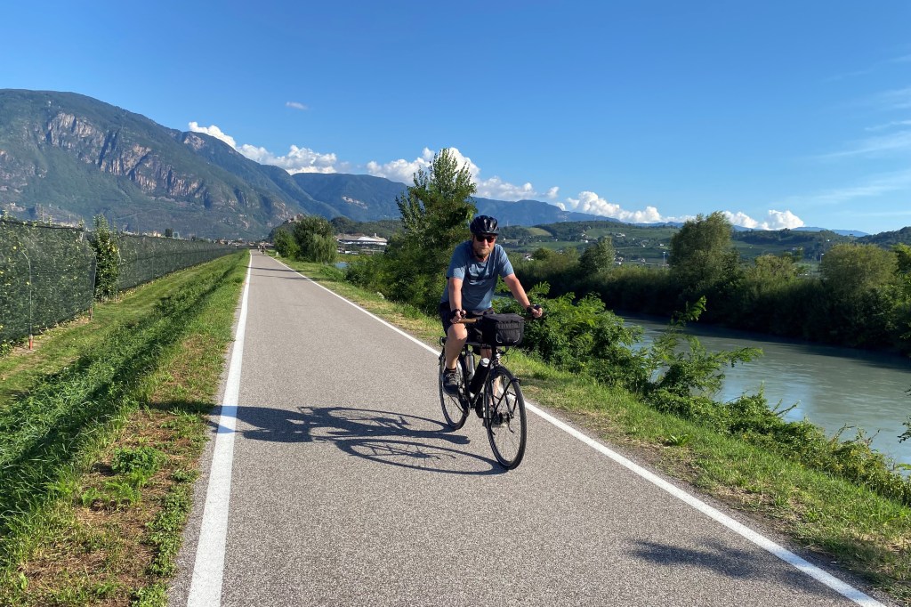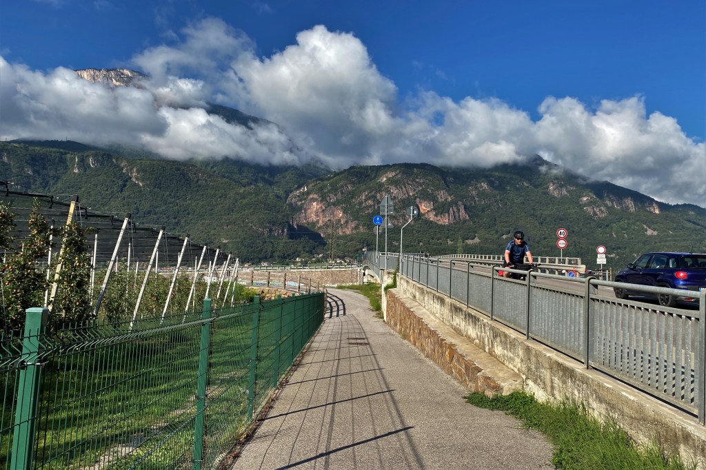 . Die fast durchgängig asphaltierte und breit angelegte Radstrecke führte vorbei an Apfelplantagen und an der Etsch, dem mit 415 Km zweitlängsten Fluss in Italien. Die Etsch, trentinisch Ades, entspringt in Südtirol und durchfließt das Etschtal und die Po – Ebene.