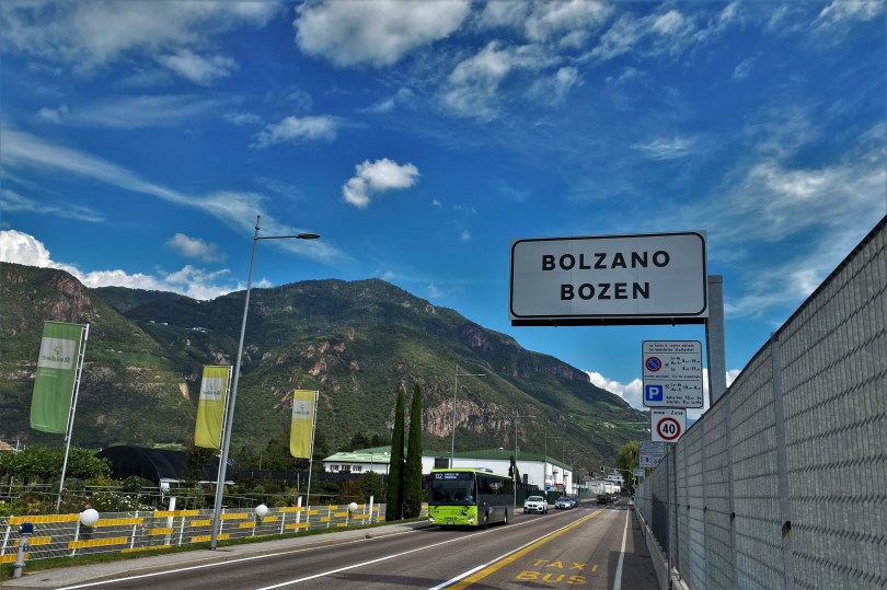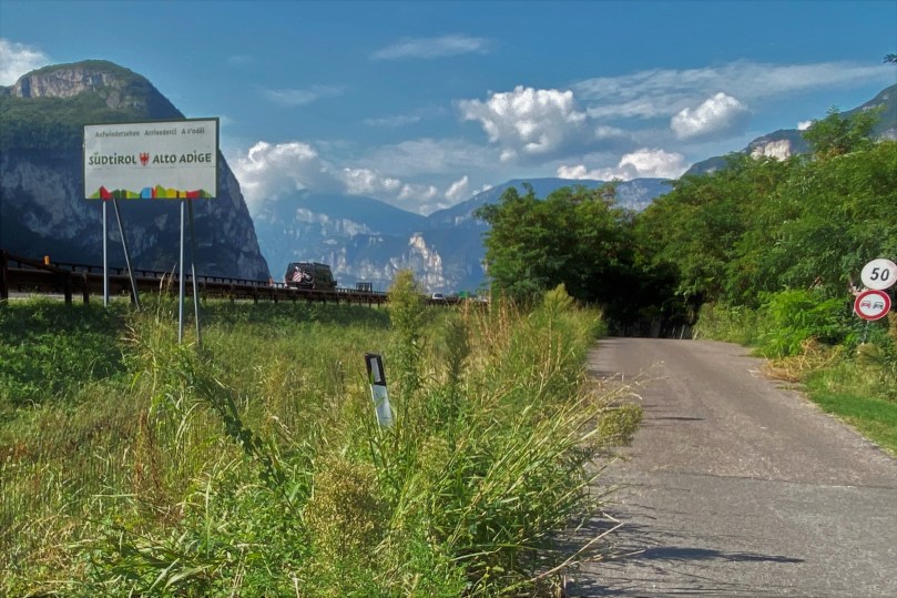 Hinter Neumarkt/ Egna erreichten wir die deutsch-italienische Sprachgrenze, jetzt verließen wir die Provinz Südtirol und damit den überwiegend deutschsprachigen Raum – benvenuti in Italia.