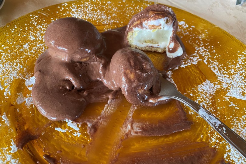 Nach einer Erfrischung im Burgrestaurant ging es den gleichen Weg wieder zurück nach Andrian, wo wir in der Pizzeria den wunderbaren Ausflug mit Profiterole ( italienische Windbeutel) und Cappuchino ausklingen ließen.