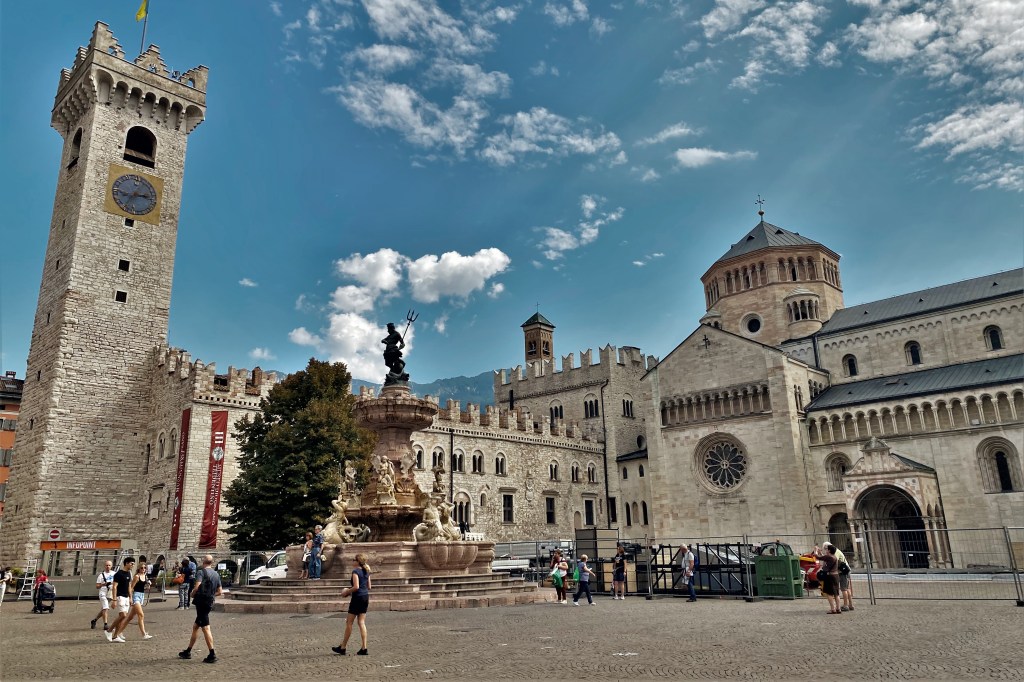 Angekommen in Trento, der Hauptstadt des Trentino, radelten wir ins Zentrum, zur Piazza del Duomo mit dem romanischen Dom und dem barocken Neptunbrunnen aus dem 18. Jahrhundert und ließen uns vom Flair dieser Stadt bezaubern.