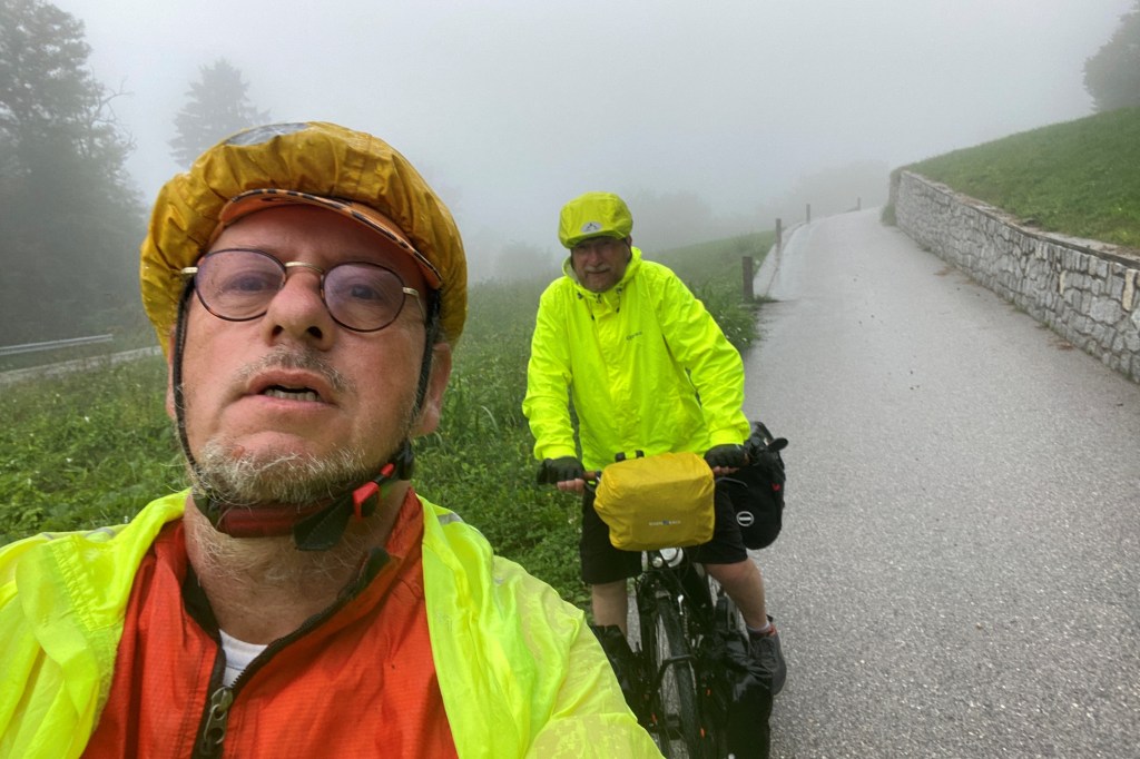 Von den Dolomiten war im Regendunst nicht viel zu sehen. Die 18.Etappe war zwar nicht lang, nur 34 Km, aber dafür mussten wir 910 Höhenmeter meistern. Die Anstiege und der Dauerregen verlangten uns alles ab und so brauchten wir auch mehr als 4 Fahrstunden, um an unseren Zielort zu gelangen.