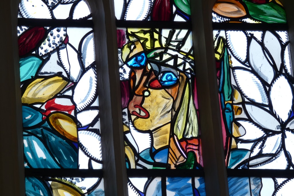 Markus Lüpertz Fensterbild mit dem Hinweis auf die Gefangenschaft von Elisabeth in Bamberg