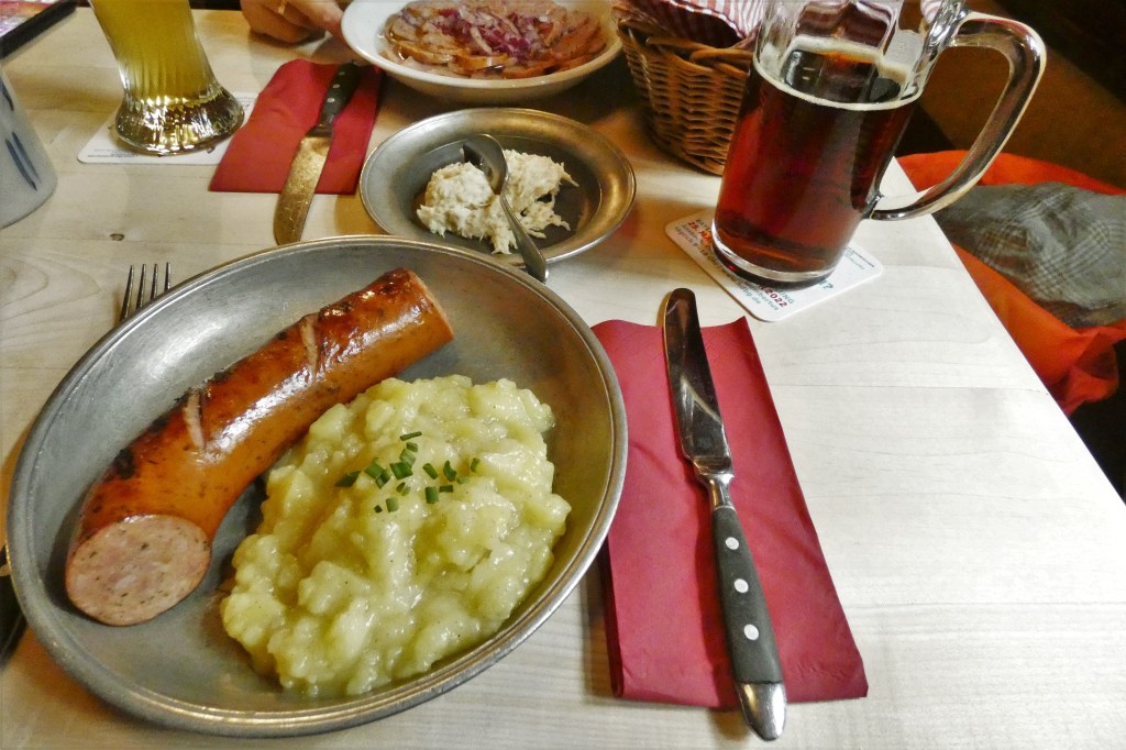 Nach so viel Kultur wird man hungrig und deshalb statteten wir der ältesten, am selben Platz betriebenen, noch existierenden Bratwurstküche Nürnbergs einen Besuch ab. Und was isst man in Nürnberg? – natürlich Bratwurst, mit Sauerkraut, mit Kartoffelsalat oder mit Musik.