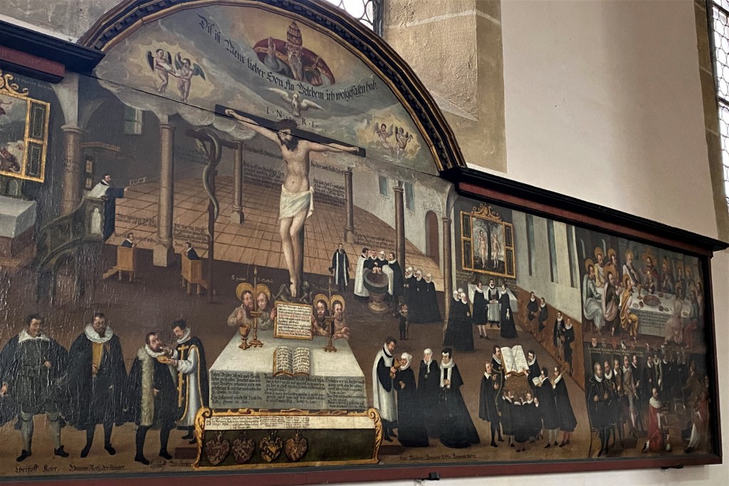 In Weißenburg angekommen ging es zur St. Andreas-Kirche im Zentrum der Kreisstadt. In der Kirche befindet sich das bekannte Weißenburger Konfessionsbild, welches an die Ereignisse des Augsburger Reichstages von 1530 erinnert.