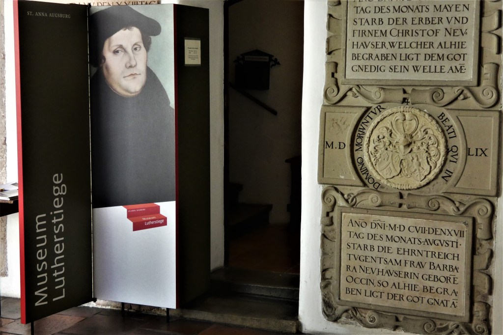 Die St. Anna Kirche ist die evangelische Hauptkirche der Stadt. Eine Gedenktafel am Eingang erinnert an Luthers Aufenthalt im ehemaligen Karmeliterkloster im Oktober 1518. Im Ostchor hängt ein Porträt von Martin Luther aus der Werkstatt von Lukas Cranach. Die Lutherstiege – das Museum im ehemaligen Kloster – setzt sich die Augsburger Reformationsgeschichte auseinander.
