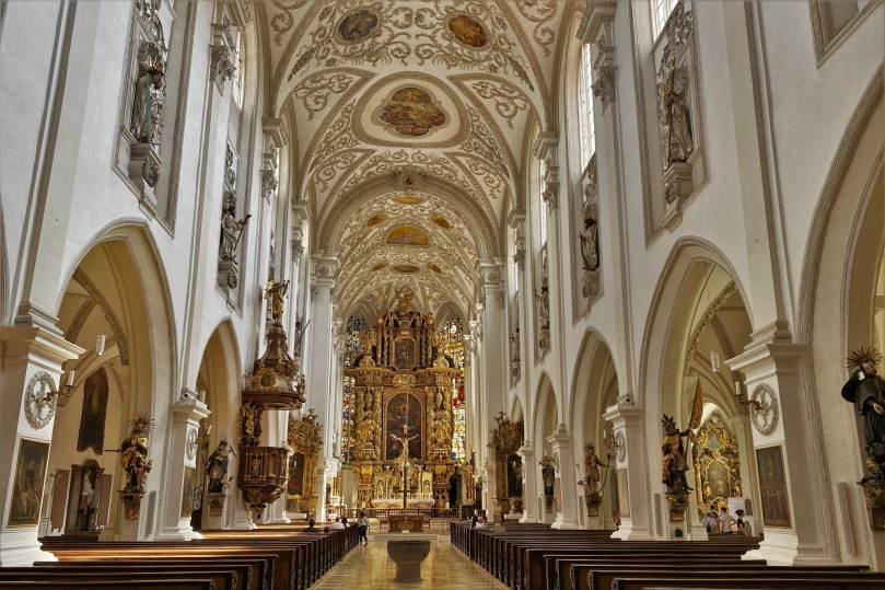 Unser Ruhetag in Augsburg stand ganz im Zeichen Martin Luthers. Es gibt in Augsburg vieles zu sehen, was an Luthers Wirken in Augsburg, an den Glaubensstreit und an seine Folgen erinnert. Wir starteten unsere Tour am Dom, denn dort hatte Luther im Jahr 1520 seine Appellation an den Papst angeschlagen. Der romanisch-gotische Dom ist eine Hauptsehenswürdigkeit der Stadt. Die fünf romanischen Prophetenfenster sind der älteste Glasgemäldezyklus der Welt.