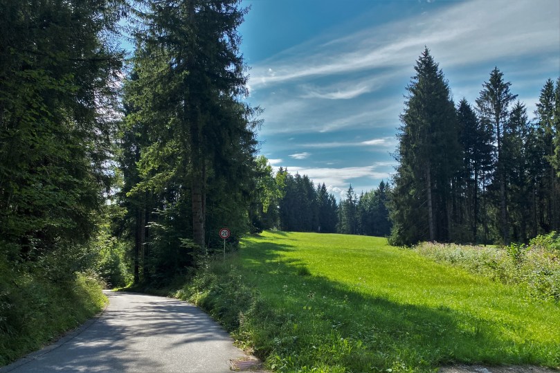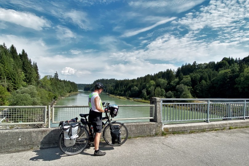 Durch das wunderschöne bayrische Voralpenland ging es heute nach Füssen. Hier scheint die Natur noch in Ordnung, die Wiesen im satten Grün, die Wälder sehen gesund aus, kein Vergleich zu Thüringen, Sachsen oder Brandenburg, gesegnetes Bayern. Die Radwege sind fast durchgehend asphaltiert oder es gibt feste Kieswege durch schattige Wälder und immer der Blick auf die Berge – einfach wunderschön.