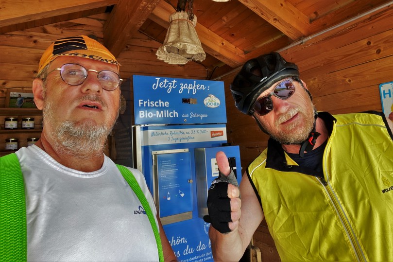 Auch BIO – Milchtankstellen gibt es hier am Radweg, die frisch gekühlte Heumilch anbieten – ein Genuss und damit eine echte Alternative zu Radler und Bier.