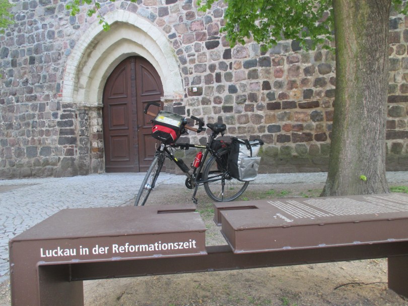 Die Spuren der Reformation sind auch in der Niederlausitz zu finden, aber ich musste schon etwas genauer hinschauen. In Luckau fand ich an der Nicolai Kirche diese schöne Reformationsbank und originale Teufelspuren am Eingang. Dorfkirchen gibt es selbstverständlich in fast jedem Dorf, so wie in Goßmar am Kranich Radweg.